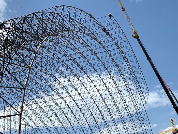 (2)网架加工前应对现场尺寸进行复测,确认无误后方可进行加工、安装;网架制作、运输、安装应遵守《空间网格结构技术规程》JGJ7-2010、《钢网架崇文螺栓球节点》JG/T 10-2009、《钢网架崇文螺栓球节点用高强度螺栓》 GB/T 16939-2016、《崇文钢结构崇文工程崇文施工规范》 GB50755-2012、《崇文钢结构崇文工程崇文施工质量验收标准》 GB50205-2020。